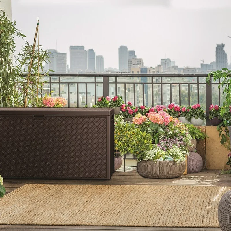 Простота форми, легкий і швидкий монтаж - це головні переваги універсального ящика Emily 270л. Ящик призначений для зберігання різноманітних садових інструментів і аксесуарів, подушок і дитячих іграшок. Сучасна стилістика і класична кольорова гамма дозволяють вписати ящик в будь-яке оформлення саду. Він прекрасно поєднується з меблевими гарнітурами лінії Emily. Це також ідеальне рішення для тераси або патіо.