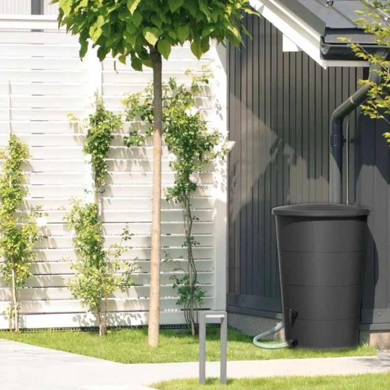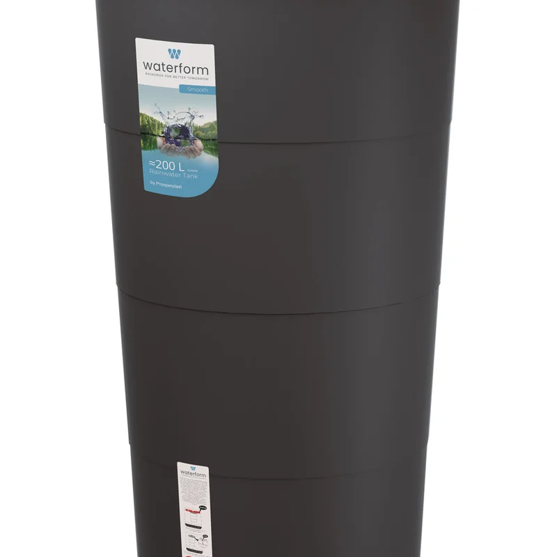 Ємність для збору дощової води Prosperplast Smooth, 200 л у практичному кольорі антрацит виготовлена з високоякісного пластику, стійкого до погодних умов.
