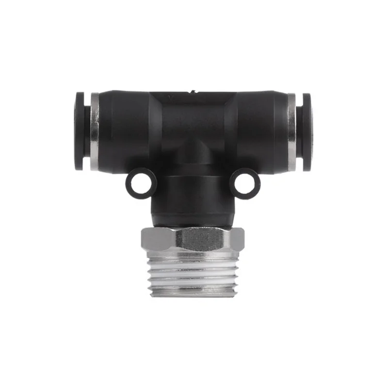 Цангове з'єднання T-подібної форми використовується для створення пневматичних магістралей і для монтажу пневмосистем. Забезпечує повністю герметичне з'єднання різних пневматичних шлангів без пошкодження їхньої поверхні (PU, PE, PA) - поліуретанових, поліетиленових, поліамідних тощо.