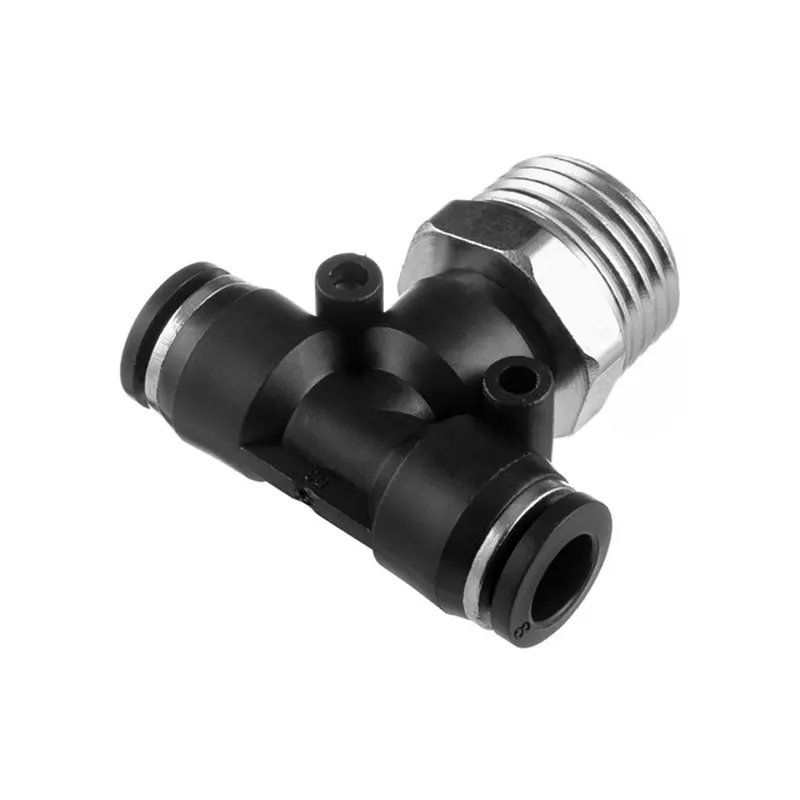 Цангове з'єднання T-подібної форми використовується для створення пневматичних магістралей і для монтажу пневмосистем. Забезпечує повністю герметичне з'єднання різних пневматичних шлангів без пошкодження їхньої поверхні (PU, PE, PA) - поліуретанових, поліетиленових, поліамідних тощо.
