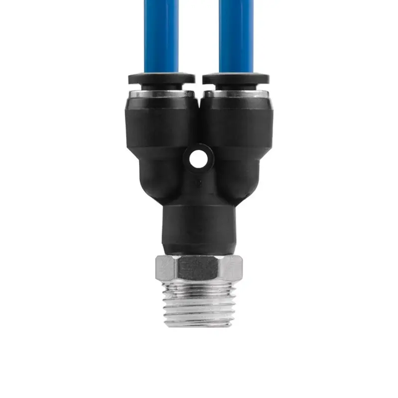 Цангове з'єднання Y-подібної форми використовується для створення пневматичних магістралей і для монтажу пневмосистем. Забезпечує повністю герметичне з'єднання різних пневматичних шлангів без пошкодження їхньої поверхні (PU, PE, PA) - поліуретанових, поліетиленових, поліамідних тощо.