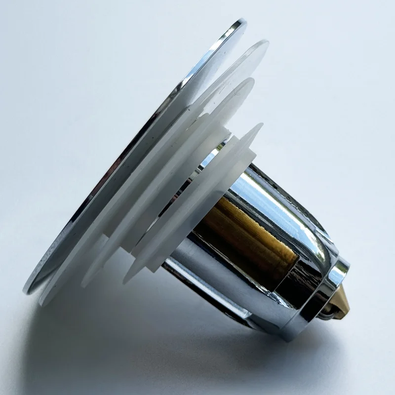 Конструкція легко перемикається одним натисканням між режимами пробки і зливу. На відміну від звичайного зливу з кнопкою, ця пробка має всередині кошик з фільтром, який акуратно збирає волоски та інше сміття, що запобігає забрудненню зливу.