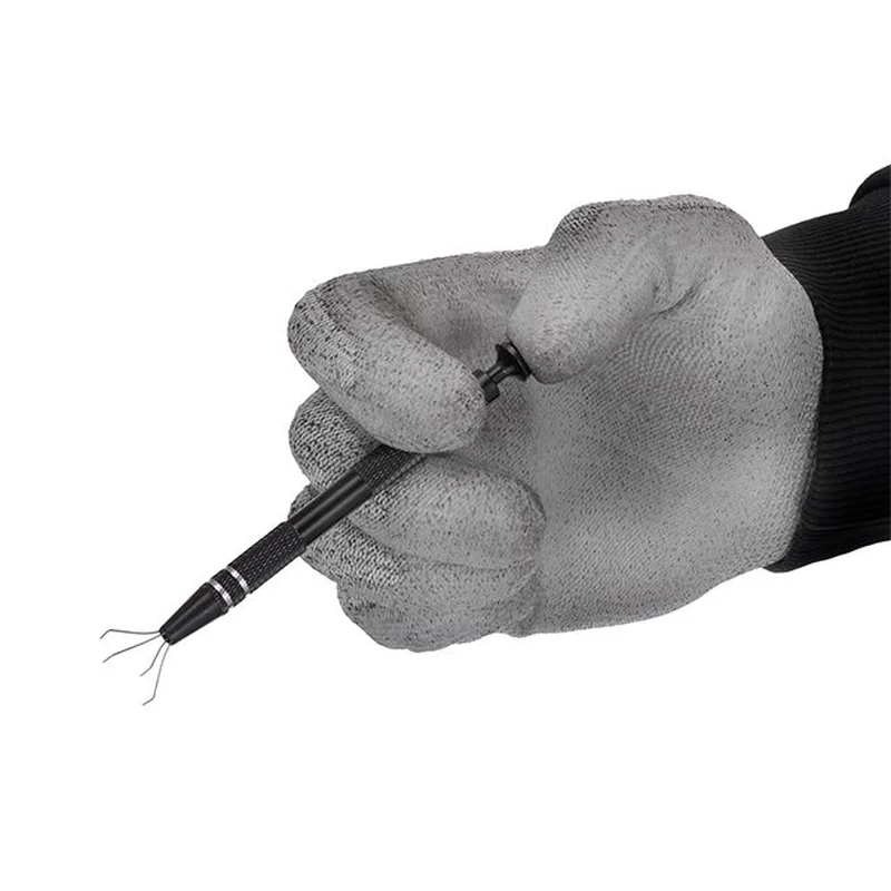 При натисканні на верхню частину інструменту з нижньої висуваються чотири тонкі металеві лапки, які захоплюють деталь з чотирьох сторін. Після відпускання верхньої частини інструменту, лапки повертаючись, щільніше охоплюють деталь і таким чином перешкоджають випаданню.