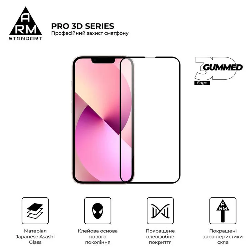 Захисне скло Armorstandart Pro для Apple iPhone 13/13 Pro Black, 0.33mm, 3D (ARM60264)