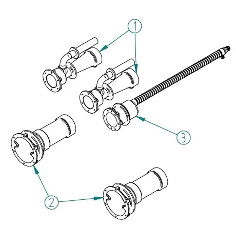Закладні деталі Fitstar 8250051 для протитечії Double-Jet, 240 мм, для морської води. Виготовлені з гарматної бронзи, стійкої до корозії, дії ультрафіолету та хімічних реагентів. У комплекті: закладна подачі G2" – 2 шт., закладна забору води G 2.5" – 2 шт., закладна кнопки ввімкнення протитечії.