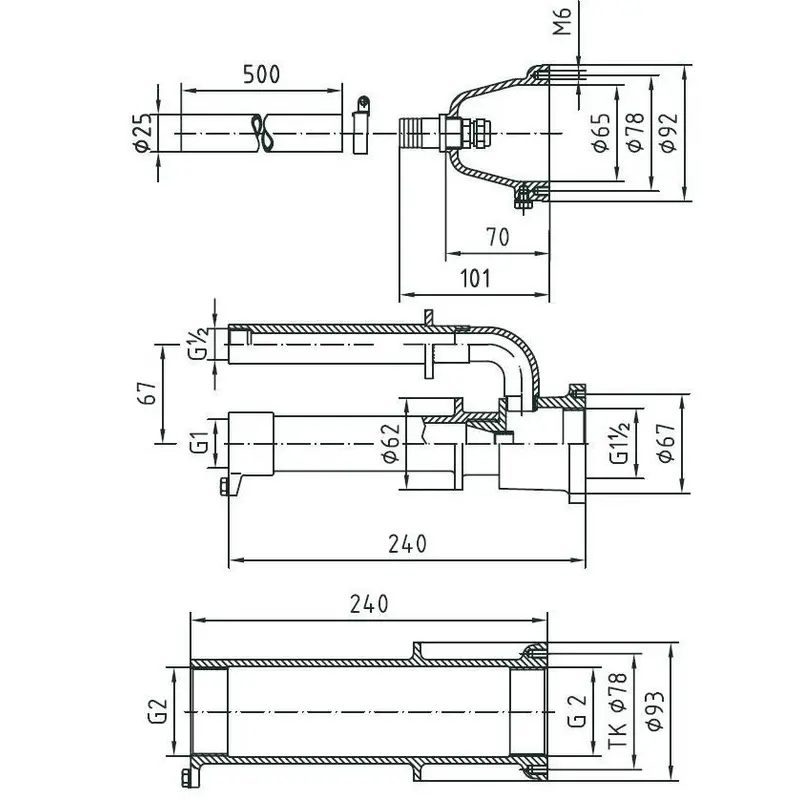 У комплекті: закладна для форсунки водозабору, закладний елемент для форсунки, що подає, закладна ніша під пневмокнопку.