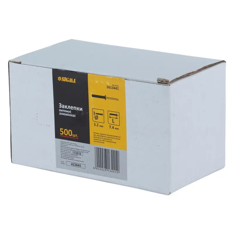 Заклепки алюмінієві Standard 3.2×7.4мм 500шт SIGMA (2613441)