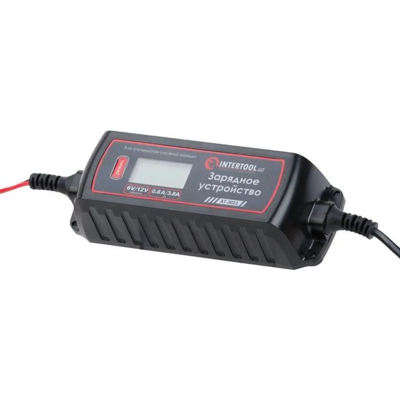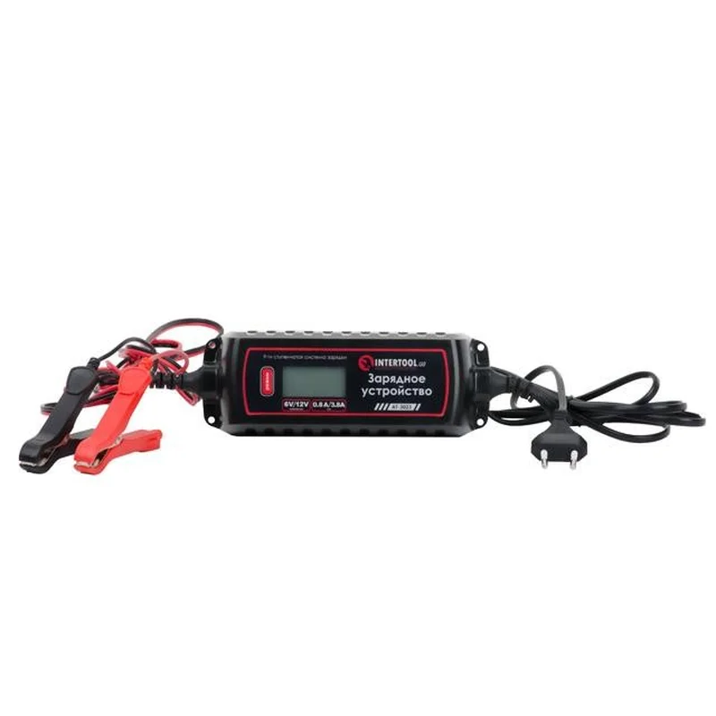 Зарядний пристрій 6/12 В, 0.8/3.8 А, 230 В, зимовий режим заряджання, дисплей, максимальна ємність акумуляторної батареї 1.2-120 А/г INTERTOOL AT-3023