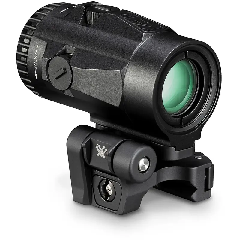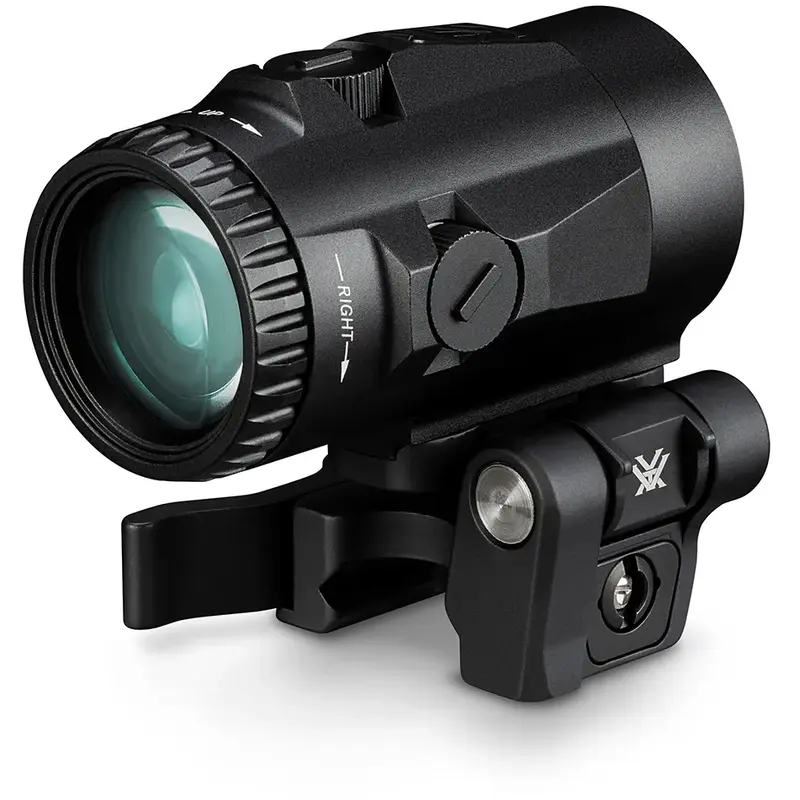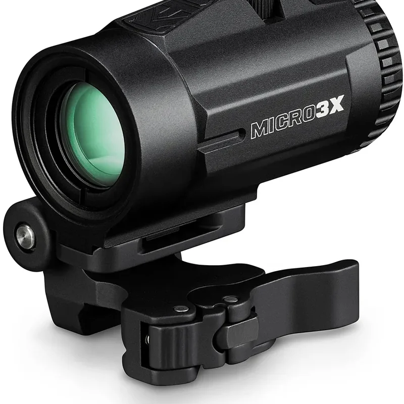 Трикратний магніфер Vortex MICRO3X призначений для збільшення дальності огляду коліматорних прицілів. Кільця ущільнювачів і цільний корпус з авіаційного алюмінію надійно захищають від попадання всередину вологи і пилу. Магніфер кріпиться на зброю на планку Пікатінні за допомогою швидкознімного кріплення. Відкидне кріплення, що регулюється, дозволяє одним натисканням кнопки і легким рухом руки швидко відвести магніфер убік для зміни мети - з дальньої на ближню.