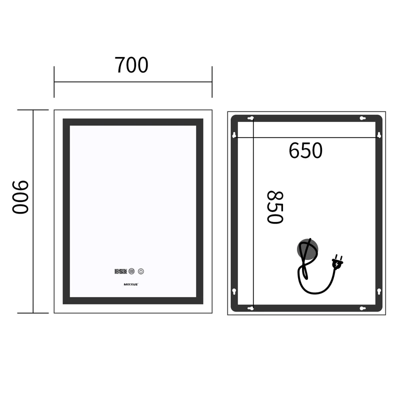 Зеркало Mixxus Premium FLASH MR21-70x90 (LED Touch, Anti-fog, димер, часы) (MP6618)
