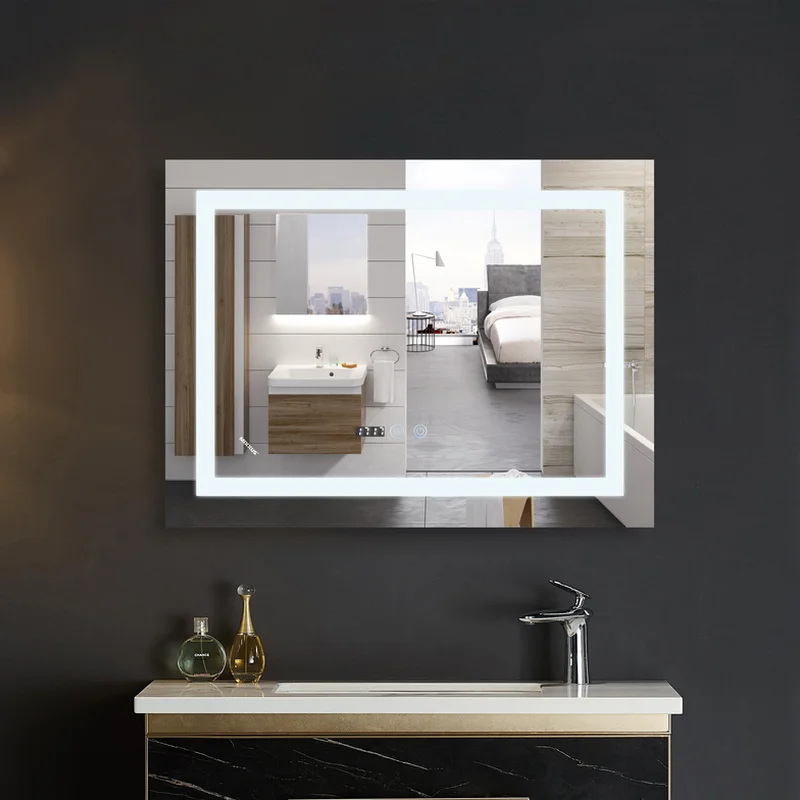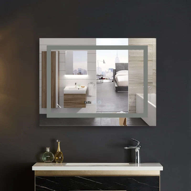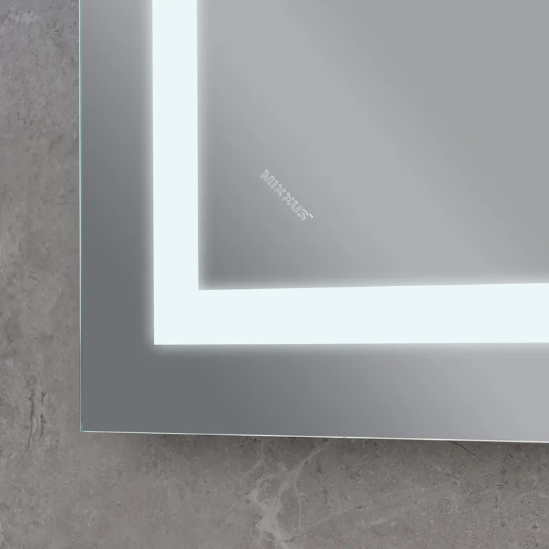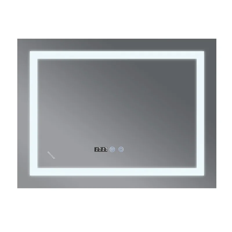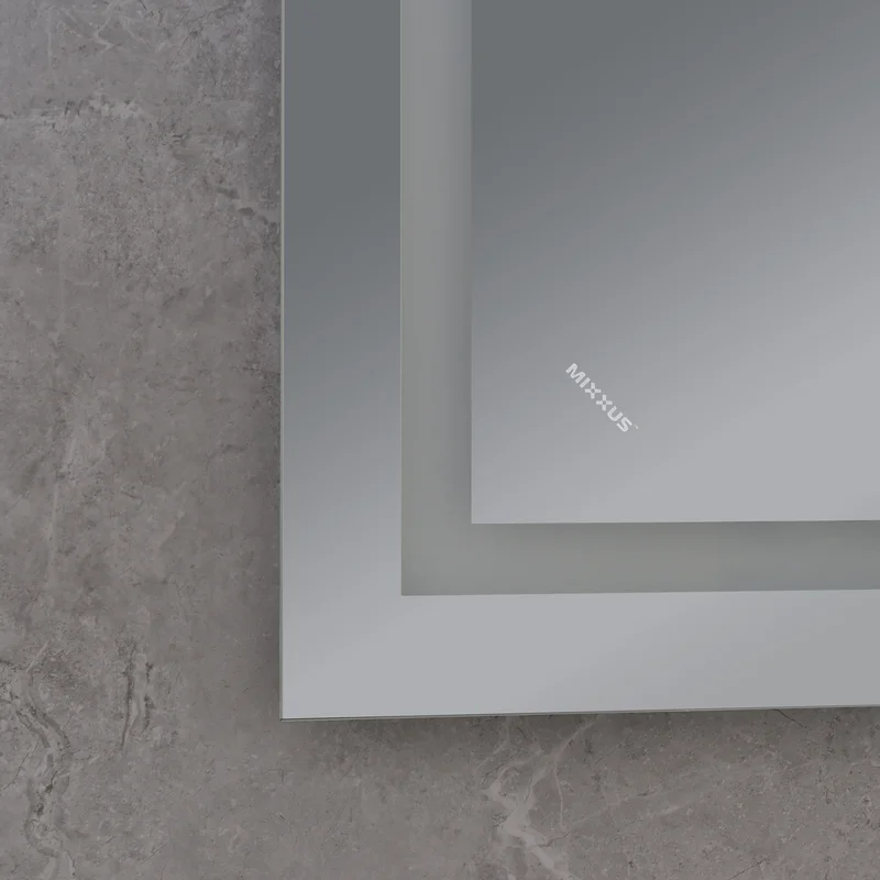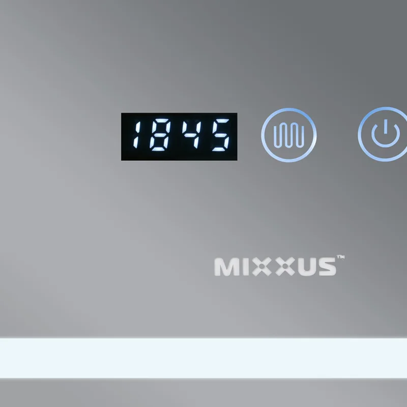 Зеркало Mixxus WARM MR02-70x50-CASE с LED Touch, Anti-fog, димером, рег. яркости, часами (MI6669)