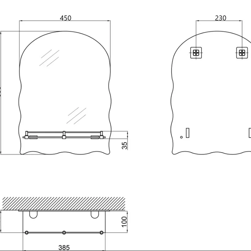 Зеркало настенное Zerix MIRRA MRZ02-450x600x105 прямоугольное с дугообразным верхом, фигурными бока