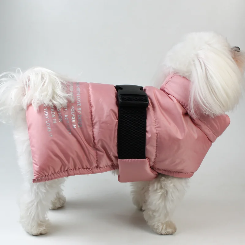 тканина водовідштовхувальна плащівка наповнювач силікон підклад з водовідштовхувальною плащової тканини на грудях пояс з резинкою для комфортної посадки по фігурі собаки дуже легко надягати і знімати застібається фастексом на спинці в зимові морози можна поєднувати і надягати під жилет костюм або светр модель унісекс