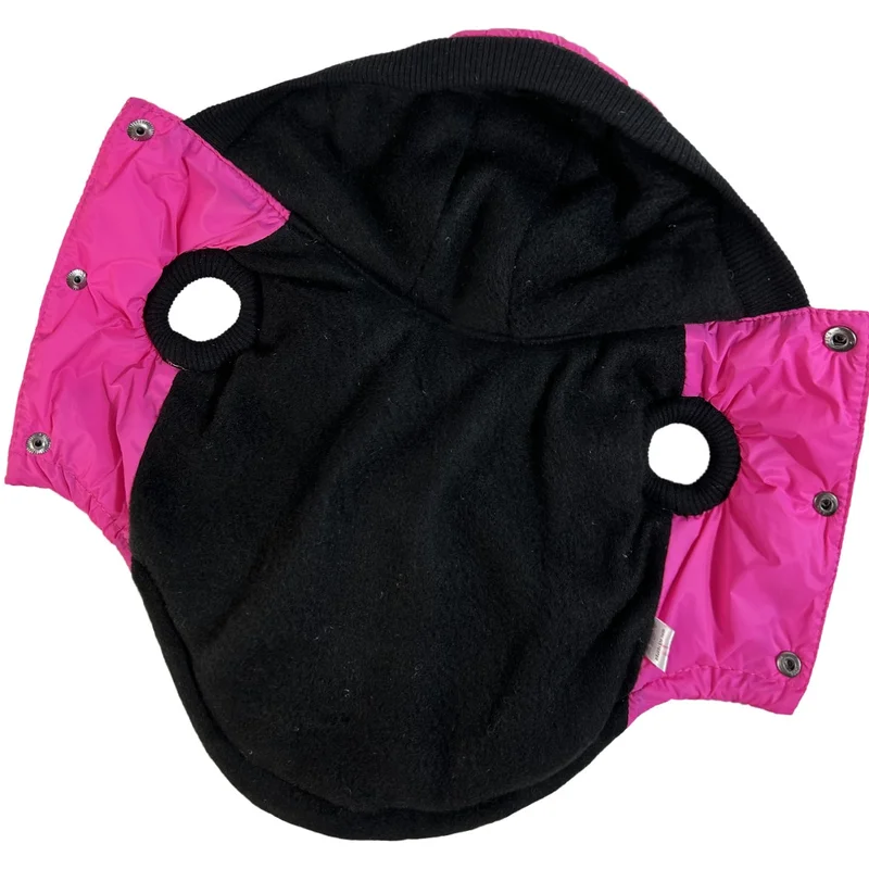 тканина плащівка лакована наповнювач синтепон (200 г / м²) подклад утеплювач фліс є регулювання довжини спинки застібається кнопками на животі є отвір для повідця на шиї капюшон з кнопкою фіксатором модель унісекс