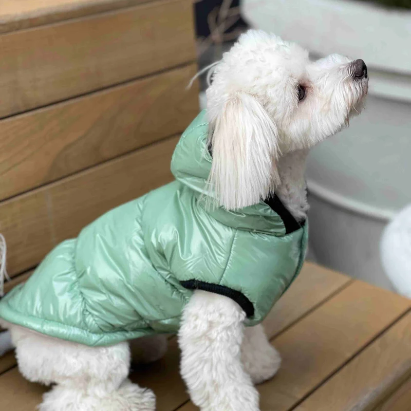 тканина плащівка лакована наповнювач синтепон (200 г / м²) подклад утеплювач фліс є регулювання довжини спинки застібається кнопками на животі є отвір для повідця на шиї капюшон з кнопкою фіксатором модель унісекс