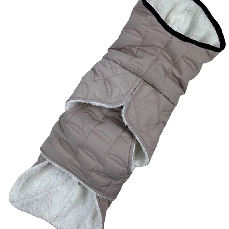 тканина водовідштовхувальна плащівка наповнювач синтепон підклад з плюшевого хутра застібається і регулюється по обхвату липучкою на спині модернізований капюшон-високий воріт, можливо носити капюшоном, або загорнути коміром на шиї є отвір для повідця і кільце для кріплення повідця
