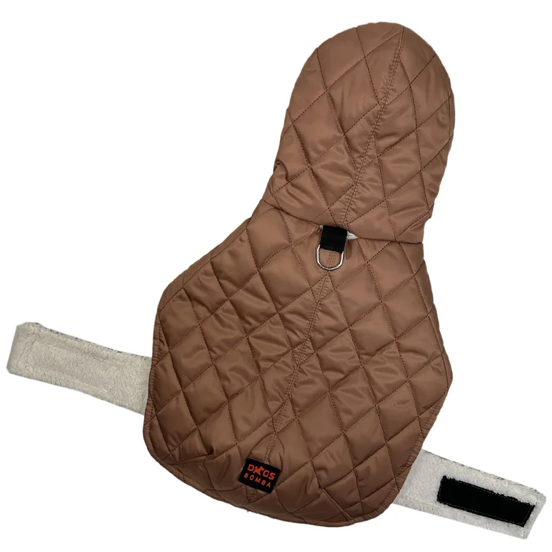 тканина водовідштовхувальна плащівка наповнювач синтепон підклад з плюшевого хутра застібається і регулюється по обхвату липучкою на спині модернізований капюшон-високий воріт, можливо носити капюшоном, або загорнути коміром на шиї є отвір для повідця і кільце для кріплення повідця