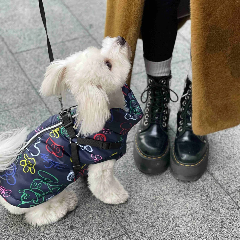 жилет з шлеей 2в1- можна пристебнути будь-який повідок шлею можна використовувати, як ручку-переноску тканина водовідштовхувальна плащівка наповнювач сінтепон підклад фліс застібається змійкою на спині комір-стійка для захисту шиї від холоду модель унісекс