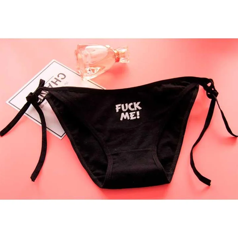 Жіночі трусики на зав'язках "Fuck Me" - Чорний - S/M/L - Еротична білизна
