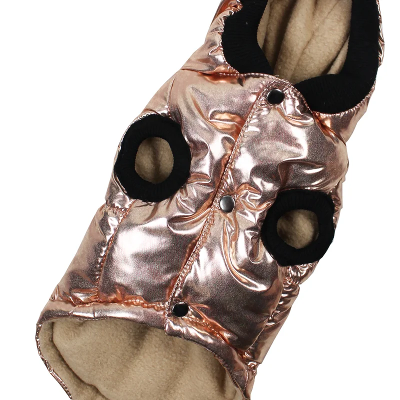 жилет виконаний з водовідштовхувальної плащової тканини; наповнювач синтепон; підкладка фліс; капюшон на кнопці фиксаторе; регулятор довжини жилетки внизу; обробка капюшона і рукавів довяз; застібається кнопками на животику, модель унісекс.