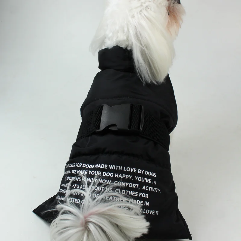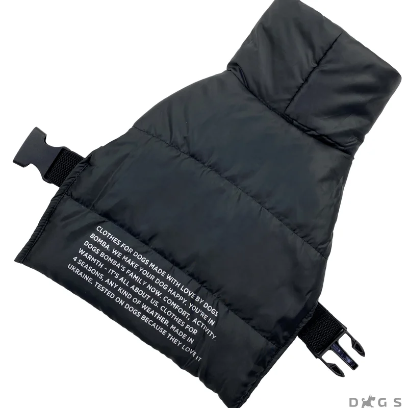 тканина водовідштовхувальна плащівка наповнювач силікон підклад з водовідштовхувальною плащової тканини на грудях пояс з резинкою для комфортної посадки по фігурі собаки дуже легко надягати і знімати застібається фастексом на спинці в зимові морози можна поєднувати і надягати під жилет костюм або светр модель унісекс