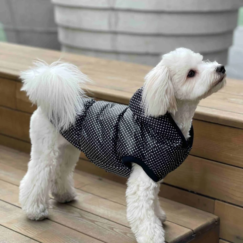 тканина водовідштовхувальна плащівка наповнювач синтепон (200 г / м²) подклад утеплювач фліс є регулювання довжини спинки застібається кнопками на животі є отвір для повідця на шиї капюшон з кнопкою фіксатором модель унісекс