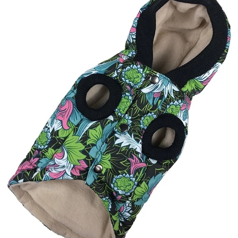 тканина водовідштовхувальна плащівка наповнювач синтепон (200 г / м²) подклад утеплювач фліс є регулювання довжини спинки застібається кнопками на животі є отвір для повідця на шиї капюшон з кнопкою фіксатором модель унісекс