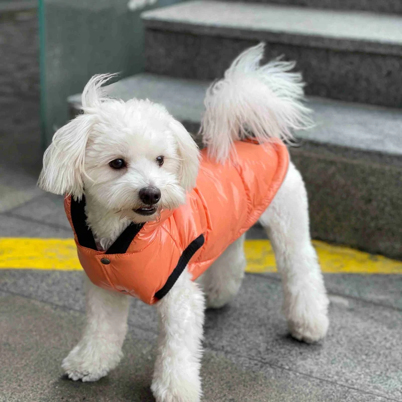 тканина плащівка лакована наповнювач синтепон (200 г / м²) подклад утеплювач фліс є регулювання довжини спинки застібається кнопками на животі є отвір для повідця на шиї капюшон з кнопкою фіксатором модель унісекс