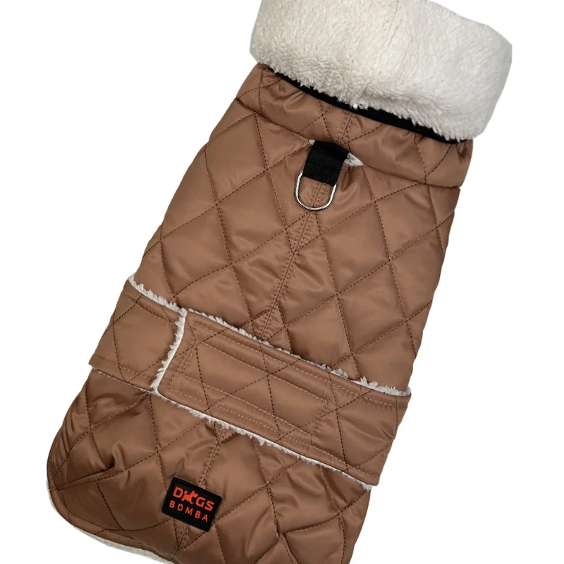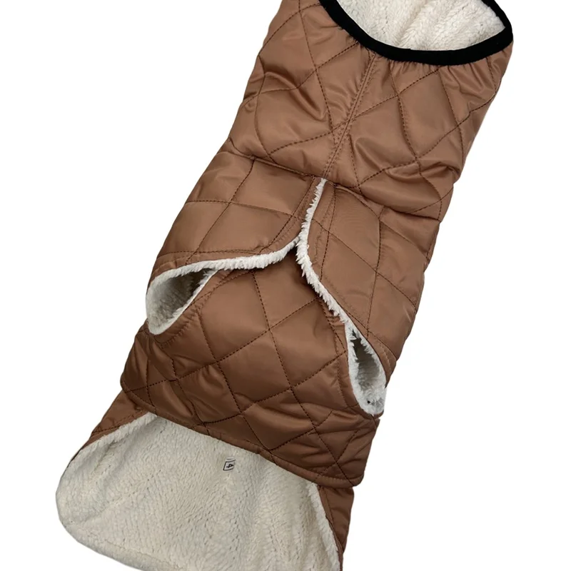 тканина водовідштовхувальна плащівка наповнювач синтепон підклад з плюшевого хутра застібається і регулюється по обхвату липучкою на спині модернізований капюшон-високий воріт, можливо носити капюшоном, або загорнути коміром на шиї є отвір для повідця і кільце для кріплення повідця
