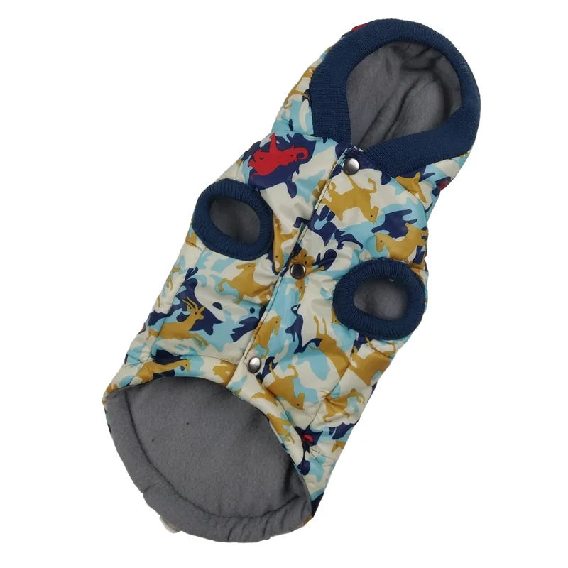 тканина водовідштовхувальна плащівка наповнювач синтепон (200 г / м²) подклад утеплювач фліс є регулювання довжини спинки застібається кнопками на животі є отвір для повідця на шиї капюшон з кнопкою фіксатором модель унісекс