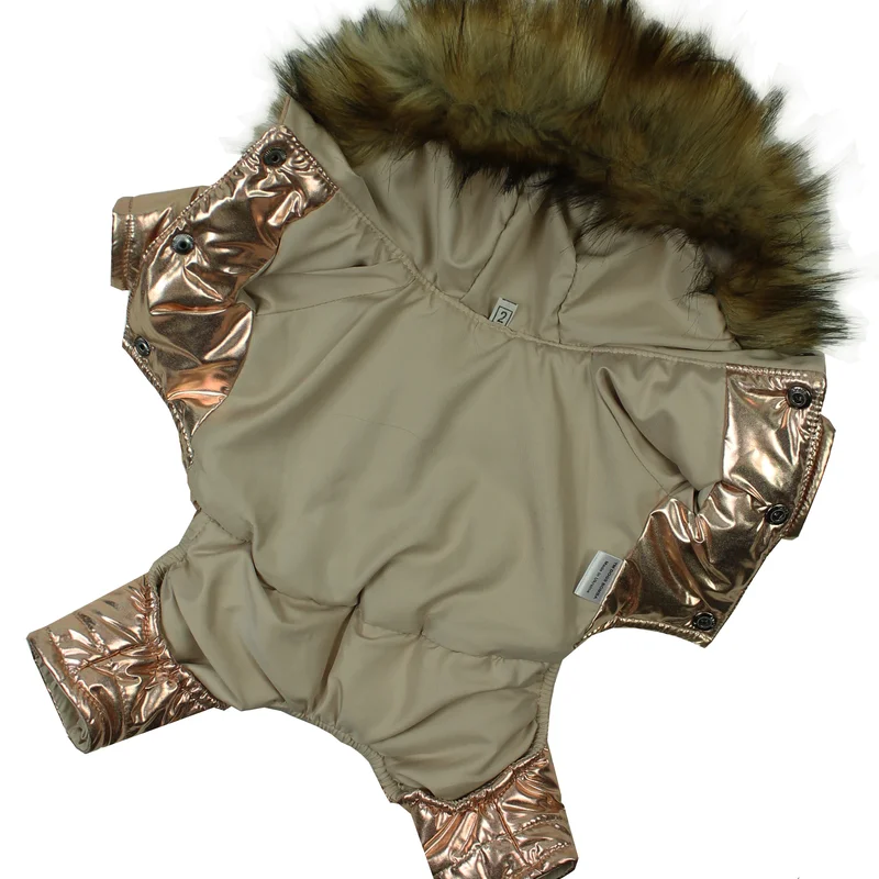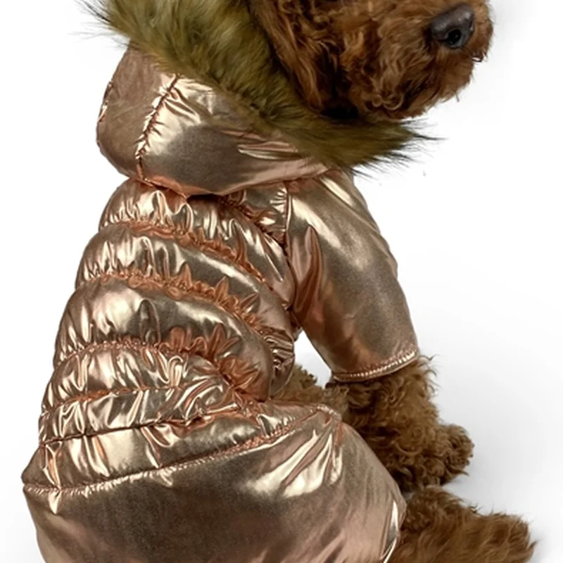 тканина водовідштовхувальна плащівка наповнювач синтепон підкладка нейлон капюшон з кнопкою фіксатором опушка штучне хутро рукава, штани, пояс з резинкою на шиї проріз для повідця застібається кнопками на животі модель унісекс