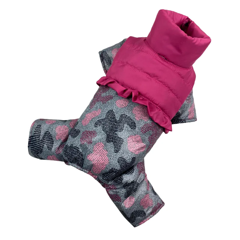 Зимовий комбінезон для дівчаток рюша камуфляж рожевий AD-19
