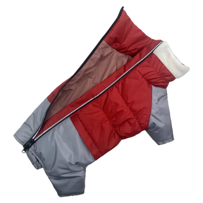 Зимовий комбінезон ДЛЯ ТАКС червоно сірий RT-20