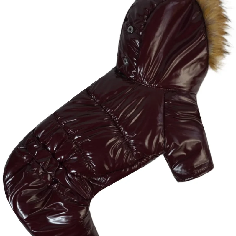 тканина водовідштовхувальна плащівка наповнювач синтепон підкладка нейлон капюшон з кнопкою фіксатором опушка штучне хутро рукава, штани, пояс з резинкою на шиї проріз для повідця застібається кнопками на животі модель унісекс