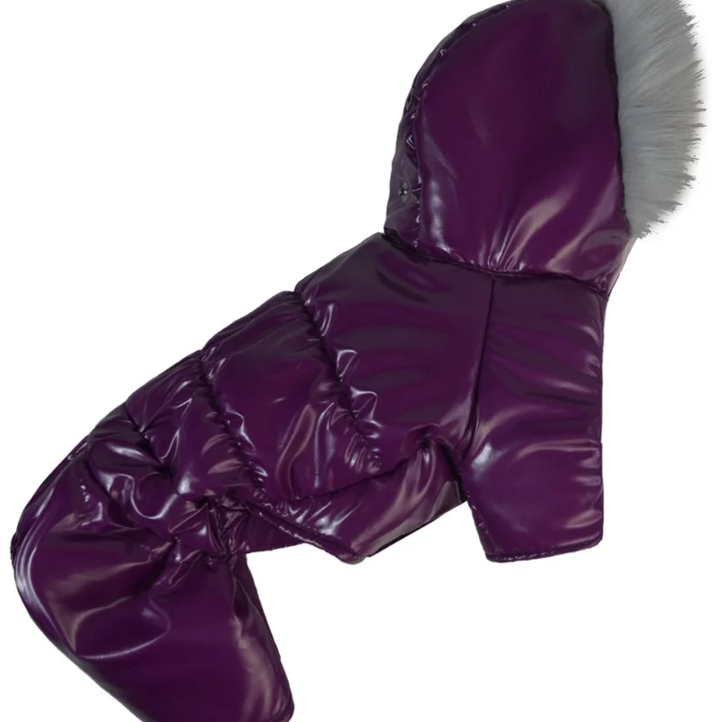 тканина водовідштовхувальна плащівка наповнювач синтепон підкладка нейлон капюшон з кнопкою фіксатором опушка штучне хутро рукава, штани, пояс з резинкою на шиї проріз для повідця застібається кнопками на животі модель унісекс