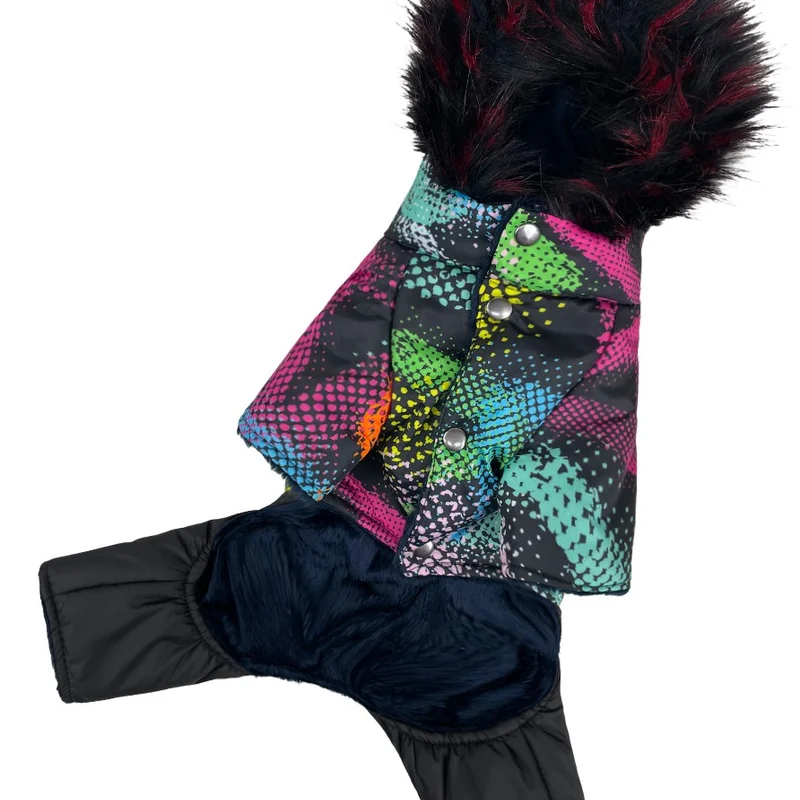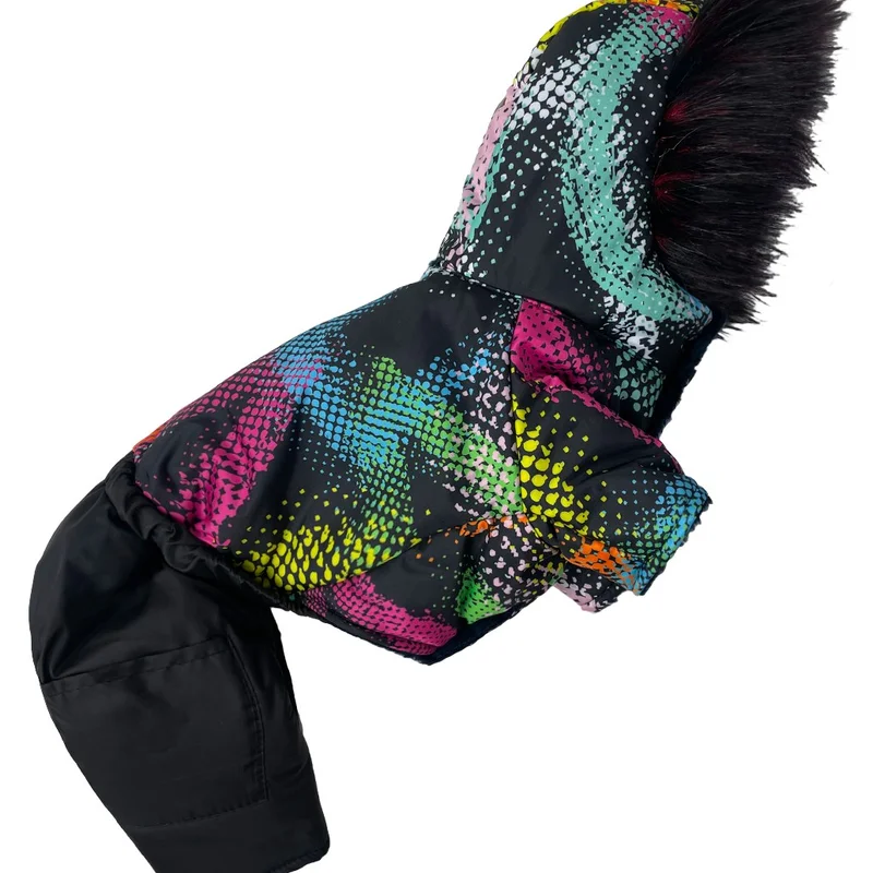 Зимовий комбінезон на хутрі абстракція кольоровий AM-23
