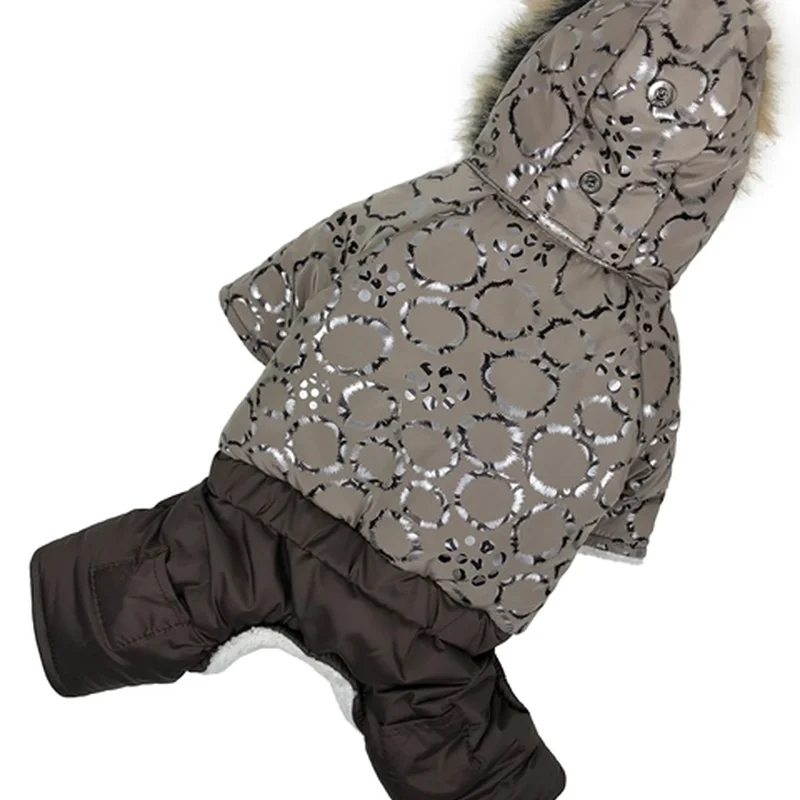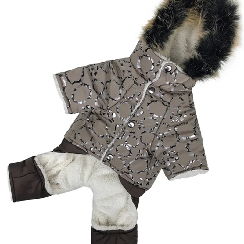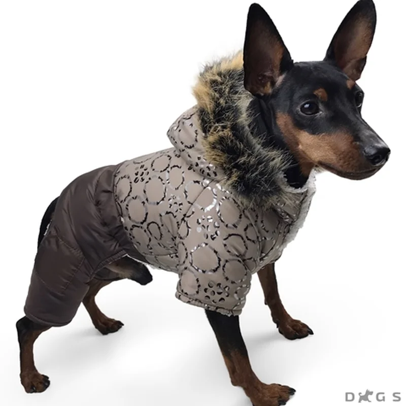 тканина водовідштовхувальна плащівка наповнювач синтепон підклад з плюшевого хутра комір-стійка для захисту шиї від холоду капюшон з кнопкою фіксатором на шиї є отвір для повідця застібається кнопками на животі на комірі може бути 1 або 2 кнопки, в залежності від розміру модель унісекс
