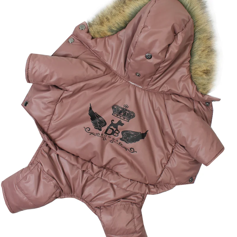 тканина водовідштовхувальна плащівка наповнювач синтепон підклад з плюшевого хутра комір-стійка для захисту шиї від холоду капюшон з кнопкою фіксатором на шиї є отвір для повідця застібається кнопками на животі на комірі може бути 1 або 2 кнопки, в залежності від розміру модель унісекс