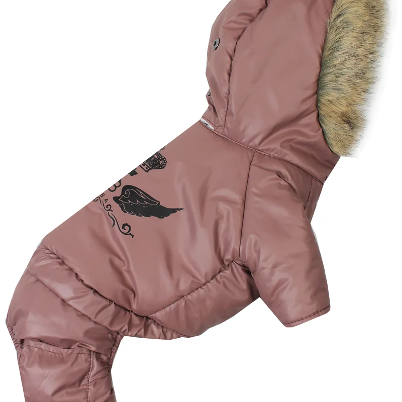 тканина водовідштовхувальна плащівка наповнювач синтепон підклад з плюшевого хутра комір-стійка для захисту шиї від холоду капюшон з кнопкою фіксатором на шиї є отвір для повідця застібається кнопками на животі на комірі може бути 1 або 2 кнопки, в залежності від розміру модель унісекс