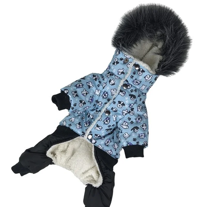 тканина водовідштовхувальна плащівка наповнювач синтепон підклад з плюшевого хутра комір-стійка для захисту шиї від холоду капюшон з кнопкою фіксатором на шиї є отвір для повідця застібається кнопками на животі на комірі може бути 1 або 2 кнопки, в залежності від розміру модель унісекс