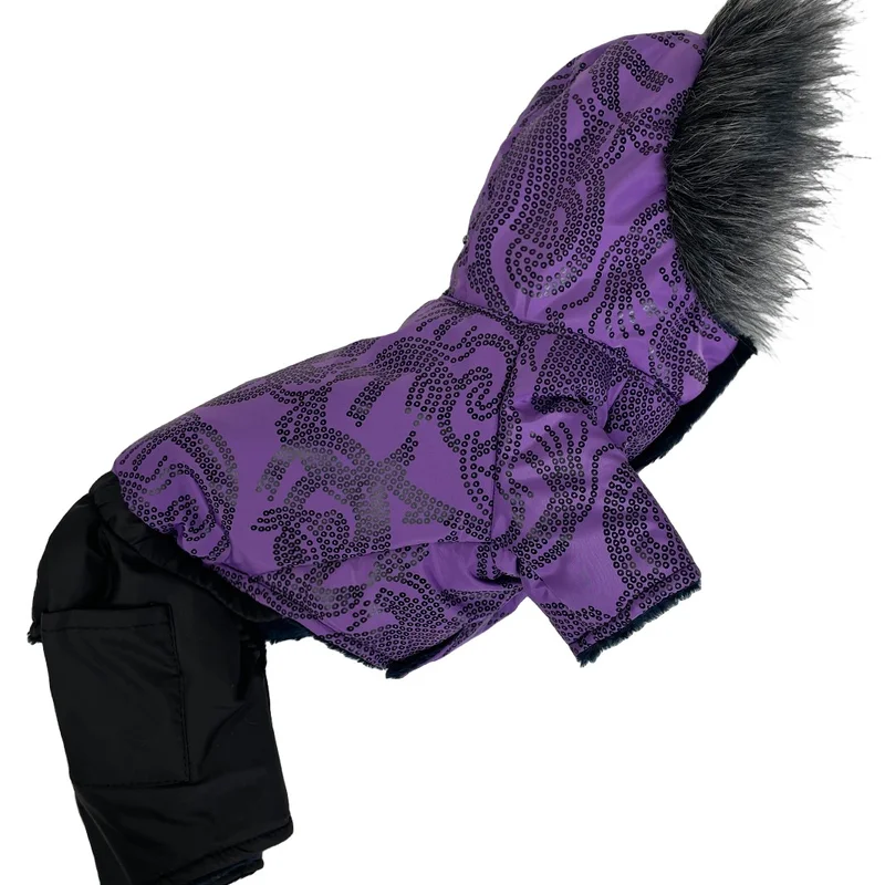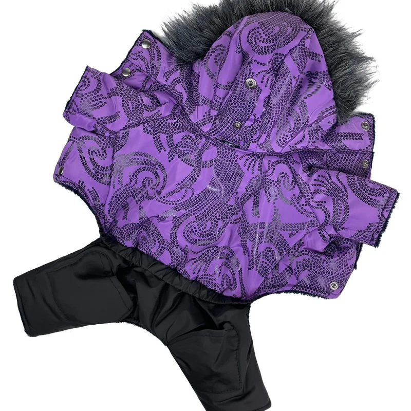 Зимовий комбінезон на хутрі візерунки бузок AM-27