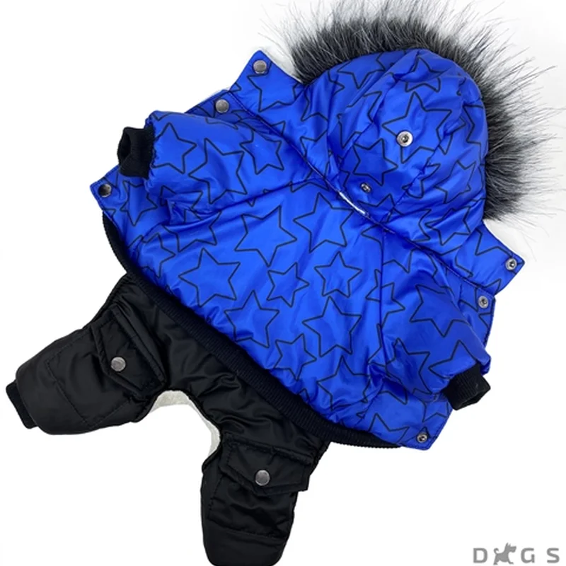 Зимовий комбінезон на хутрі зірки сині AM-10
