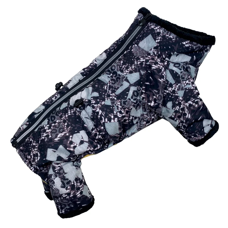 тканина водовідштовхувальна плащівка наповнювач синтепон підкладка фліс обробка рукавів, штанів, горловини з плюшевого хутра застібається змійкою на спині, змійка люкс прогумована, що не промокає молнiя світловідбиваюча регулятор обхвату грудей на фіксаторах модель унісекс
