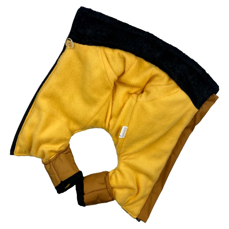 тканина водовідштовхувальна плащівка наповнювач синтепон підкладка фліс обробка рукавів, штанів, горловини з плюшевого хутра застібається змійкою на спині, змійка люкс прогумована, що не промокає молнiя світловідбиваюча регулятор обхвату грудей на фіксаторах модель унісекс