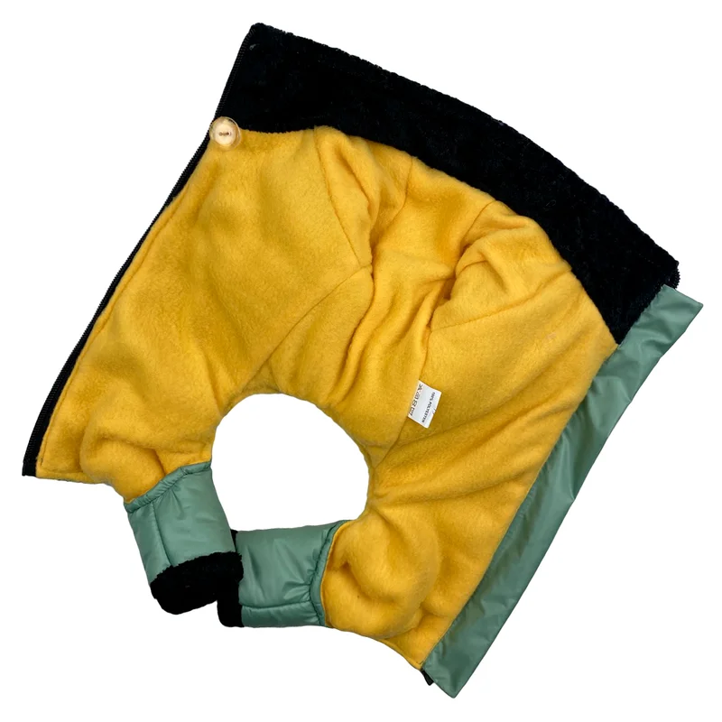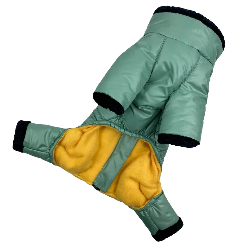 тканина водовідштовхувальна плащівка наповнювач синтепон підкладка фліс обробка рукавів, штанів, горловини з плюшевого хутра застібається змійкою на спині, змійка люкс прогумована, що не промокає молнiя світловідбиваюча регулятор обхвату грудей на фіксаторах модель унісекс