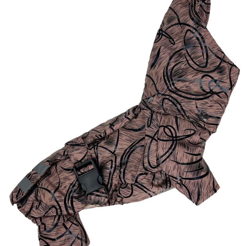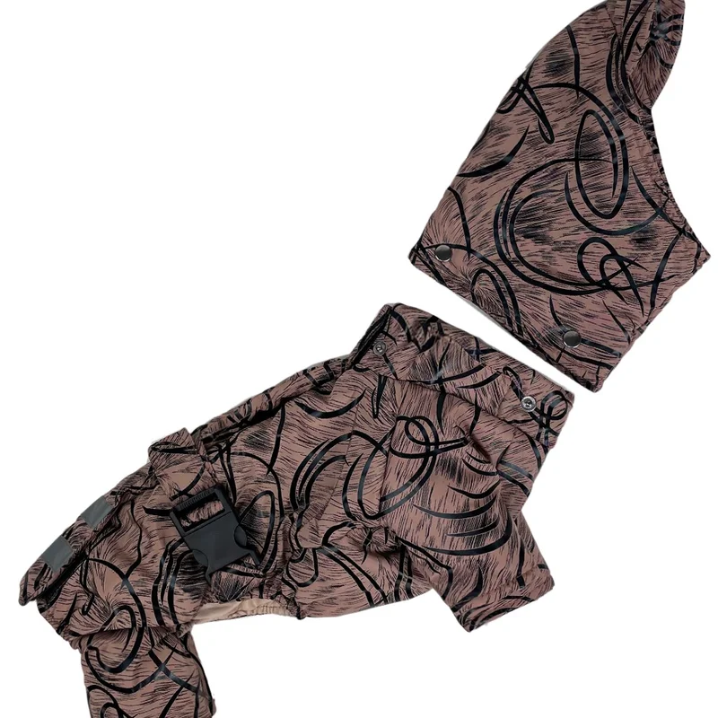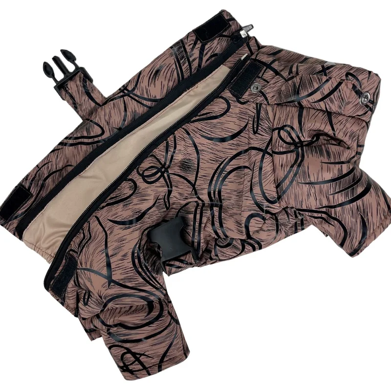 Зимовий комбінезон з поясом візерунки коричневий R-37