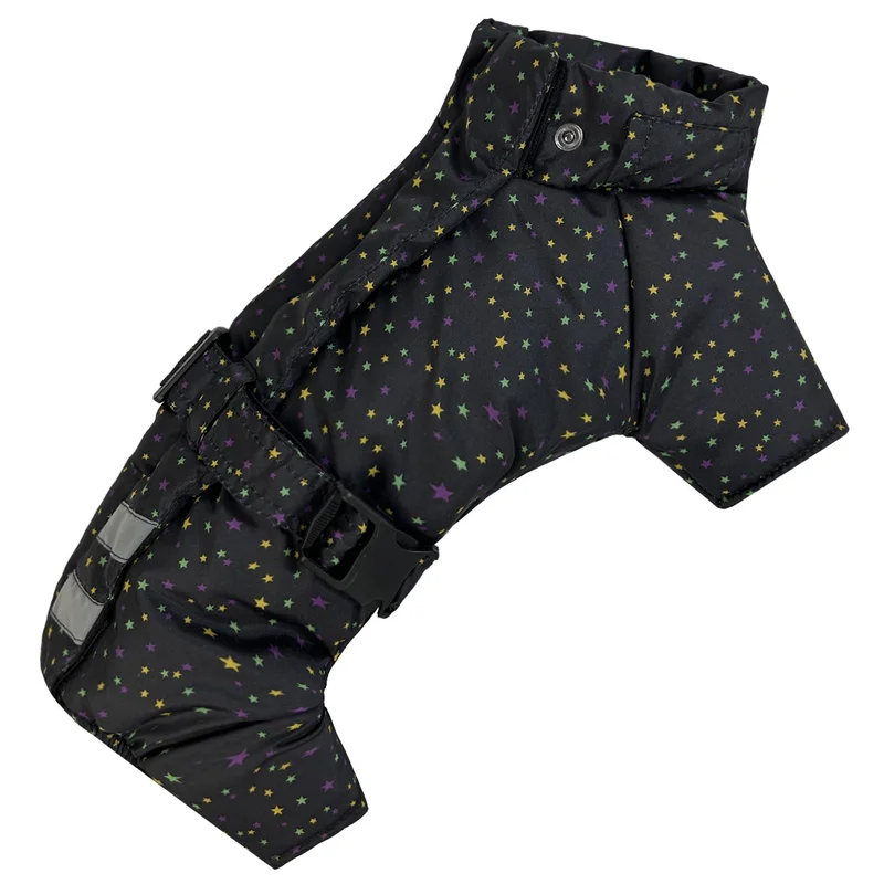 тканина водовідштовхувальна плащівка наповнювач синтепон подклад водовідштовхувальна плащівка застібається змійкою на спині обхват грудей регулюється поясом на горловині шлейки для одягання повідця капюшон можна підвернути і носити високим коміром капюшон відстібається (знімний) на спинці світловідбиваючі стрічки модель унісекс