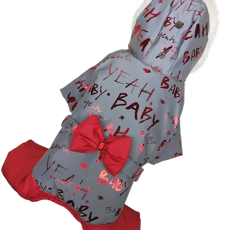 тканина світловідбиваюча плащівка модель ДЛЯ ДІВЧАТ, живіт ЗАКРИТИЙ комбінезон світиться при направленні на нього будь-якого світла перші 2 фото без направлення світла на комбінезон, 3 і 4 фото при направленні світла на комбінезон кращий вибір для безпечних прогулянок ввечері, собаку видно на дорозі наповнювач синтепон (200 г / м²) підклад з водовідталкувальної плащової тканини на шиї отвір для повідця капюшон з кнопкою фіксатором комірець стійка застібається кнопками на животі