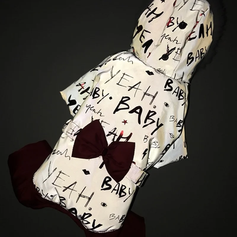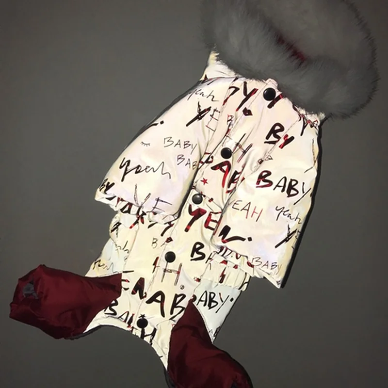 тканина світловідбиваюча плащівка модель ДЛЯ ДІВЧАТ, живіт ЗАКРИТИЙ комбінезон світиться при направленні на нього будь-якого світла перші 2 фото без направлення світла на комбінезон, 3 і 4 фото при направленні світла на комбінезон кращий вибір для безпечних прогулянок ввечері, собаку видно на дорозі наповнювач синтепон (200 г / м²) підклад з водовідталкувальної плащової тканини на шиї отвір для повідця капюшон з кнопкою фіксатором комірець стійка застібається кнопками на животі