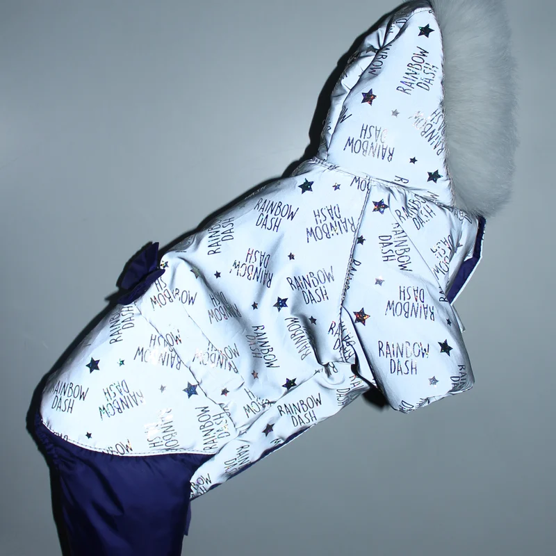 ![CDATA[Description: fabric REFLECTIVE raincoat model FOR GIRLS, belly CLOSED glows when any light is directed at it the first 2 photos without the direction of light on, 3 and 4 photos with the direction of light on the overalls. the best choice for safe walks in the evening, the dog is visible on the road sintepon filler (200 g / m²) lining made of waterproof raincoat fabric hole for a leash on the neck hood with snap button stand collar fastens with buttons on the belly